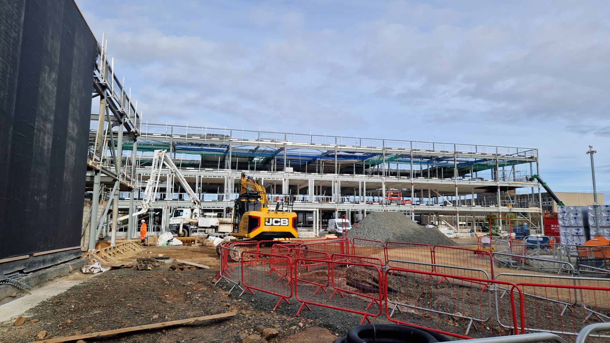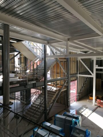 Mineral wool insulation insulates the steel frame construction. Brick cladding will feature on the ground floor, with metal cladding at the upper levels.